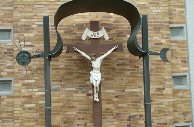 Von dem Kreuz vor dem Haupteingang der St.-Wendelinus-Kirchengemeinde entwendeten Unbekannte Kupferornamente.
