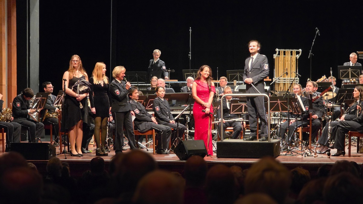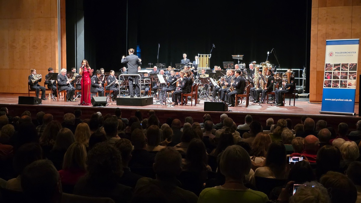 Mit langanhaltendem Applaus, bewegenden Momenten und einer festlichen Atmosphäre ging am Mittwochabend das vierte Benefizkonzert des Polizeiorchesters Niedersachsen in der Polizeiinspektion Emsland/Grafschaft Bentheim zu Ende. Erstmals gastierte das renommierte Orchester im Forum Alte Werft Papenburg - und verwandelte den Konzertsaal in einen Ort musikalischer Begegnung und weihnachtlicher Besinnung. Unter der Leitung von Martin Spahr präsentierte das Polizeiorchester Niedersachsen ein eindrucksvolles Programm unter dem Titel "Weihnachtliche Klänge", das musikalisch von großen Städten der Welt bis hin zur stillen Tiefe der Weihnachtszeit führte. Die professionelle Klangkultur, stilistische Vielfalt und spürbare Spielfreude bestätigten eindrucksvoll den Ruf des Orchesters als musikalische Visitenkarte der niedersächsischen Polizei. Eröffnet wurde der Abend feierlich durch die Leiterin der Polizeiinspektion Nicola Simon, die das Publikum mit ihren beiden Co-Moderatorinnen Sophie und Jasmin von der Friedensschule Lingen herzlich begrüßte. Im Anschluss sorgte die Big Band der Schule mit drei weihnachtlichen Beiträgen für einen mitreißenden Auftakt und setzte ein starkes Zeichen für die erfolgreiche musikalische Nachwuchsarbeit. Die jungen Musikerinnen und Musiker wurden für ihren Auftritt mit großem Beifall belohnt. Ein Höhepunkt des Konzerts war erneut der Auftritt von Susan Albers, die bereits im vergangenen Jahr das Publikum begeistert hatte. Die Singer-Songwriterin verlieh den weihnachtlichen Liedern mit ihrer ausdrucksstarken Stimme eine besondere emotionale Tiefe. Die Premierenaufführung des Titels "Weihnachtliches Schweigen", die eigens von Orchestermitglied Björn Vüllgraf komponiert und von Frau Albers gesungen wurde, berührte sichtbar die Herzen der Zuhörerinnen und Zuhörer. "Wir freuen uns über die großartige Unterstützung. Wir konnten heute einige tolle Gespräche führen und unsere Arbeit präsentieren," sind sich die Vereine helpful Kinderhospiz und ambulantes Hospiz Papenburg und Umgebung einig, die mit dem Erlös des Konzerts bedacht werden. Den krönenden Abschluss bildete die gemeinsame Zugabe "We Are the World", die das Publikum von den Sitzen riss und den Benefizgedanken des Abends eindrucksvoll unterstrich. "Mein herzlicher Dank gilt der Stadt Papenburg, den Musikerinnen und Musikern des Polizeiorchesters Niedersachsen sowie Susan Albers und der Friedensschule, die dieses Benefizkonzert möglich gemacht haben. Zu erleben, wie Musik Menschen in der Region verbindet und dabei zugleich Gutes bewirkt ist immer wieder etwas ganz Besonderes", resümiert Nicola Simon. Ein restlos begeistertes Publikum, hochklassige musikalische Darbietungen und eine Atmosphäre, die den Geist der Weihnachtszeit auf besondere Weise erlebbar machte. Das erste Benefizkonzert des Polizeiorchesters Niedersachsen in Papenburg wird vielen Besucherinnen und Besuchern in bester Erinnerung bleiben.