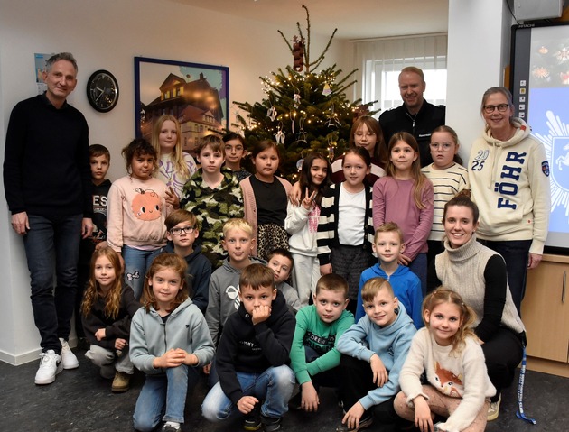 In diesem Jahr übernahm die Klasse 3b der Grundschule Im Sande gemeinsam mit ihren Lehrerinnen Frau Renzenbrink und Frau Grimm diese Aufgabe. Die Kinder brachten ihren liebevoll gestalteten Schmuck an den Baum, erhielten einen Einblick in die Arbeit der Kriminaltechnik, besuchten die Wache und erlebten eine Vorführung der Diensthundeführer, bevor es wieder zurück in den Schulalltag ging.