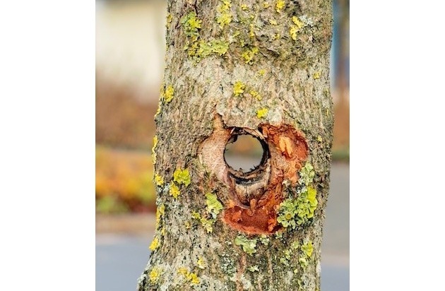 Zwischen dem 21. November und dem 4. Dezember beschädigten bislang Unbekannte einen Baum, der auf einer Verkehrsinsel an der Bielefelder Straße zur Verkehrsberuhigung angepflanzt wurde. Die Unbekannten bohrten mittig ein Loch in den Stamm - zudem fanden sich mehrere Bohrstellen im Wurzelbereich. Der Baum wurde dadurch erheblich in seiner Stand- und Lebensfähigkeit beeinträchtigt und wird voraussichtlich absterben. Die Gemeinde stellte Strafantrag. Die Polizei leitete Ermittlungen wegen Sachbeschädigung ein. Zeugen, die im genannten Zeitraum verdächtige Beobachtungen gemacht haben, werden gebeten, sich bei der Polizeistation in Bad Laer unter 05424/6445021 zu melden.