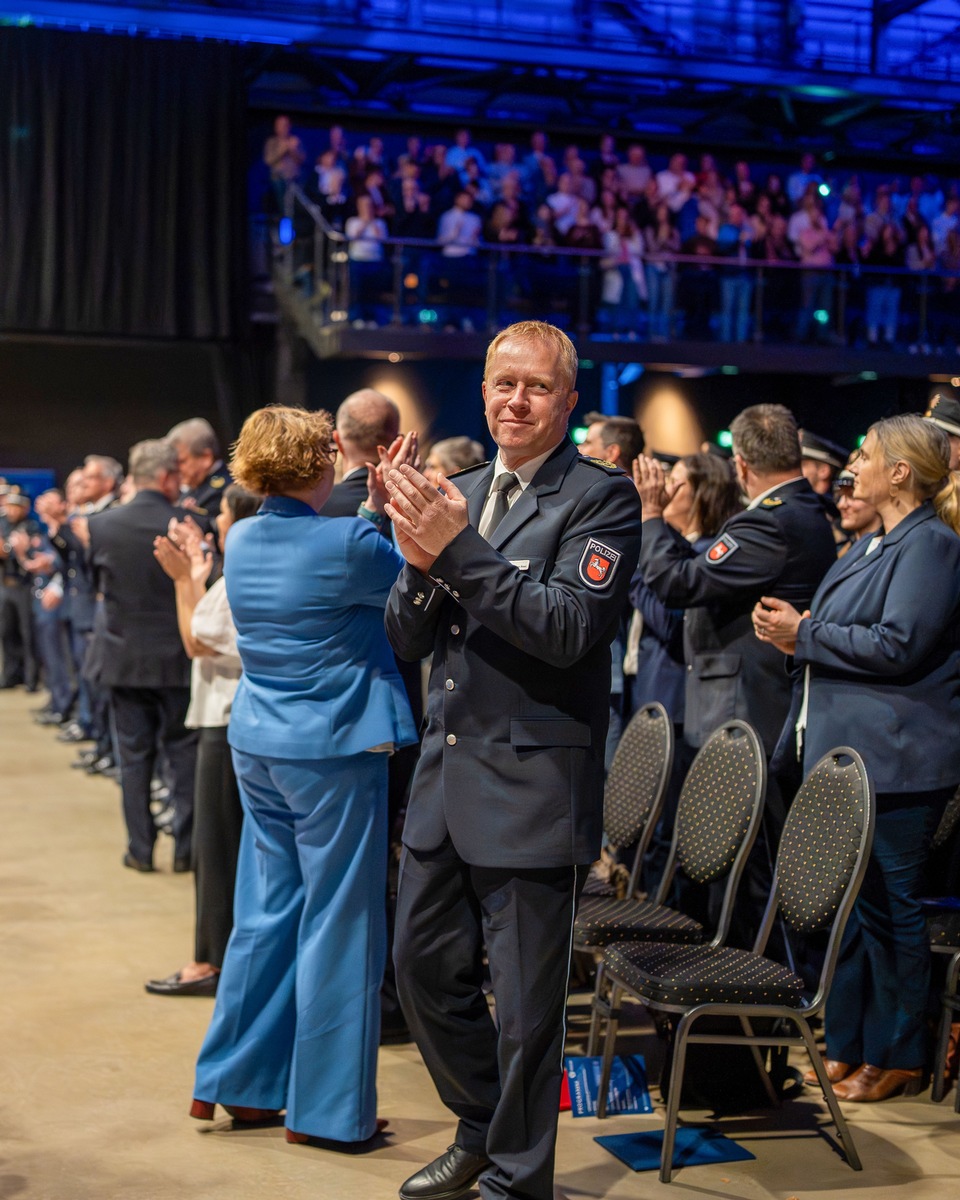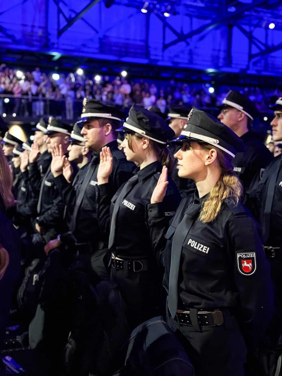 Die Vereidigung fand in der Halle 39 in Hildesheim im Beisein zahlreicher Angehöriger, Gäste aus Politik und Polizei sowie Vertreterinnen und Vertretern der Kommunen statt. Musikalisch begleitet vom Polizeiorchester Niedersachsen entstand eine Atmosphäre, die gleichermaßen festlich wie bewegend war.