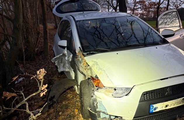 Bei einem Unfall am Donnerstagnachmittag bei Banzkow ist eine Person leicht verletzt worden, ein mitfahrendes Kleinkind blieb unverletzt. Nach ersten polizeilichen Erkenntnissen soll der Fahrer eines Mitsubishis gegen 16.00 Uhr aus Banzkow kommend auf der Alten Landstraße dem Gegenverkehr auf den unbefestigten Seitenstreifen ausgewichen sein. Dabei verlor er offenbar die Kontrolle über sein Fahrzeug, das in der weiteren Folge nach rechts von der Straße abkam und mit einem Baum kollidierte. Der 36-jährige Fahrer erlitt durch den Zusammenstoß leichte Verletzungen, konnte jedoch nach medizinischer Erstversorgung vor Ort verbleiben. Das auf dem Rücksitz befindliche 17 Monate alte Kind blieb bei dem Unfall unverletzt. Der Mitsubishi war nicht mehr fahrbereit und musste abgeschleppt werden. Es entstand ein Sachschaden von circa 5000 Euro. Die Polizei hat den Unfall vor Ort aufgenommen und ermittelt jetzt zur genauen Unfallursache.
