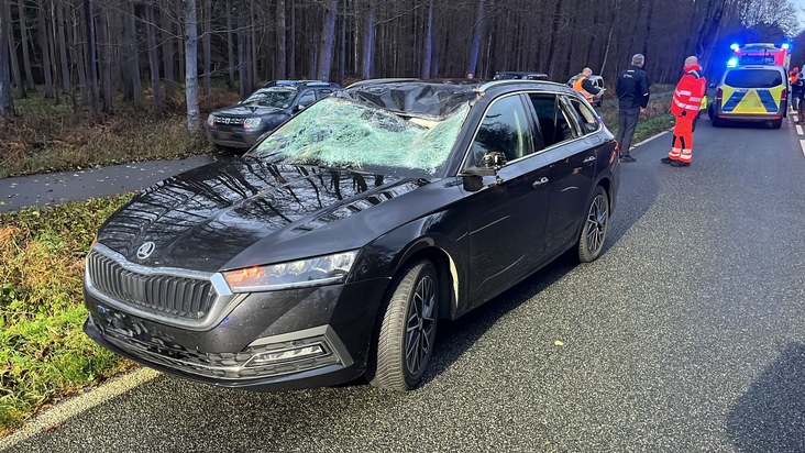 Am Donnerstag, den 20.11.2025, kam es gegen 15:20 Uhr auf der Landesstraße 22 zwischen Hinrichsdorf und Torfbrücke zu einem Verkehrsunfall mit Wildbeteiligung.