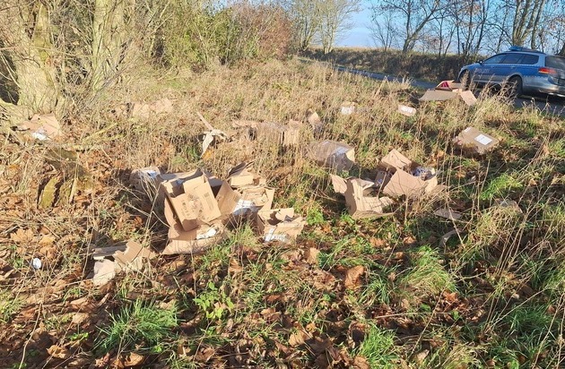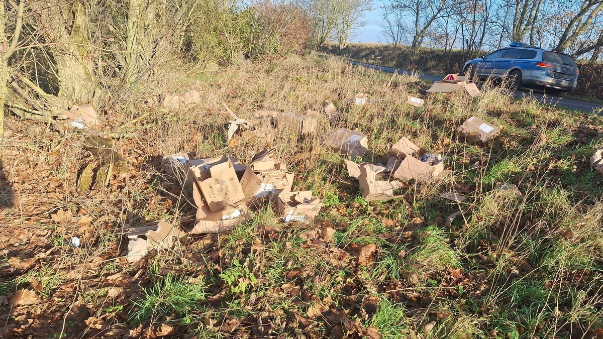 Mindestens 60 weggeworfene Paketsendungen am Straßenrand zwischen Alt Brenz und Blievenstorf beschäftigen die Ludwigsluster Polizei derzeit.