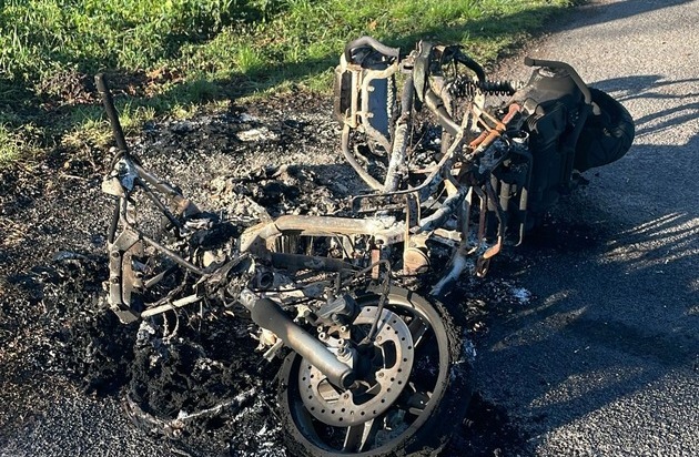 Nur wenig später erhielten Polizeikräfte den Hinweis auf ein stark beschädigtes Motorrad. Dieses wurde ausgebrannt gegen 07:40 Uhr auf einem Radweg zwischen der Neukruger Straße und der Straße Lange Stege entdeckt. Der Hersteller des Motorrades konnte aufgrund der starken Brandbeschädigungen nicht mehr festgestellt werden.
