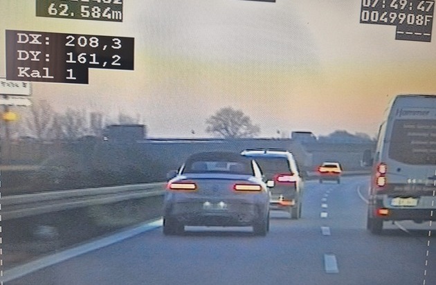Doch damit nicht genug: Nach dem Überholen des Videofahrzeugs setzte der Mercedes seine Fahrt auf der linken Fahrspur fort und fuhr anschließend bei einer Geschwindigkeit von 166 km/h auch auf einen vorausfahrenden BMW viel zu dicht auf. Der von den Polizeibeamten errechnete Abstand betrug etwas mehr als 21 Meter - erforderlich wären mindestens 83 Meter gewesen.