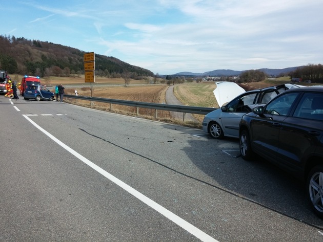 POL-FR: Klettgau-Geißlingen. Schwerer Unfall auf der B 34 mit drei beteiligten Fahrzeuge, fünf Personen zum Teil schwer verletzt