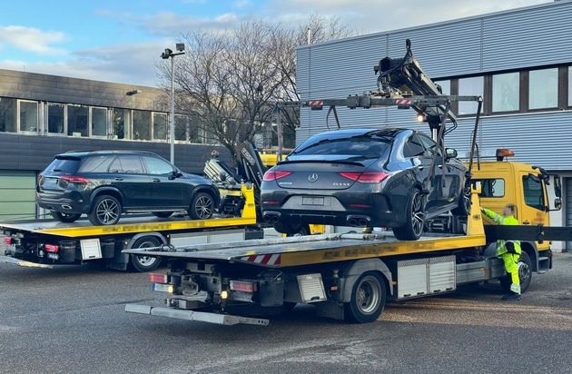 Am frühen Freitagmorgen wurden in Heilbronn zwei weitere, hochmotorisierte Kraftfahrzeuge aufgrund wiederholter Verstöße gegen die straßenverkehrsrechtlichen Vorschriften auf Anordnung des Polizeipräsidiums Heilbronn beschlagnahmt. Die Beschlagnahmeverfügung gilt zunächst für die kommenden 4 Wochen. Bereits im Oktober des vergangenen Jahres wurde ein Mercedes Benz CLS 500 4MATIC wegen wiederholter Verstöße durch das Polizeipräsidium Heilbronn beschlagnahmt. Der Wagen wurde zwischenzeitlich durch die Stadt Heilbronn eingezogen. Am heutigen Freitag wurde ein weiteres Fahrzeug des bereits im Oktober betroffenen Fahrzeughalters, ein Mercedes-Benz AMG CLS 53 4MATIC in grau, beschlagnahmt. Zudem wurde ein Mercedes-Benz GLE 400 D 4MATIC in grün, eines Familienangehörigen des Mannes beschlagnahmt. Trotz der, aufgrund massiver Verkehrsverstöße, im Oktober durchgeführten Beschlagnahme eines Mercedes Benz CLS 500 4MATIC, kam es bereits im Dezember 2025 zu einem weiteren gefährlichen Vorgang im Straßenverkehr mit einem der heute beschlagnahmten Fahrzeuge, desselben Fahrzeughalters. Hierbei wurde zunächst mit deutlich erkennbarer überhöhter Geschwindigkeit durch ein Heilbronner Industriegebiet gerast und der Fahrer eines unbeteiligten Fahrzeuges wurde durch wiederholtes dichtes Auffahren genötigt. Hierbei kam es noch zu einer Vielzahl weiterer Verstöße bis hin zur Bedrohung von Verkehrsteilnehmern und dem unzulässigen Überholen auf einer Rechtsabbiegerspur. In den Sozialen Medien wurden die Fahrzeuge des Fahrzeughalters und deren Fahrweise zudem angepriesen und polizeiliche Maßnahmen, wie beispielsweise die Beschlagnahme vom Oktober 2025, ins Lächerliche gezogen.