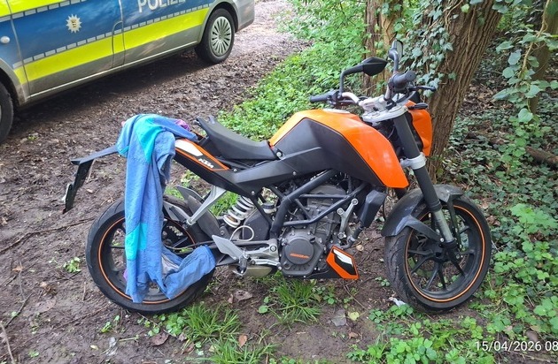 Am Mittwochmorgen wurde auf einem Waldweg in Heilbronn-Frankenbach ein Kraftrad aufgefunden. Gegen 7:45 Uhr war eine Spaziergängerin auf dem parallel zur Leintalstraße verlaufenden Weg unterwegs, als ihr das am Wegrand, im Wald, abgestellte Zweirad auffiel. An der KTM 125 "Duke" war kein Kennzeichen angebracht. Die Maschine weißt keine Unfallschäden auf, allerdings wurde der Sitz teilweise und der Soziussitz komplett abmontiert. Außerdem hing eine hellblau/türkise Trainingsjacke über der KTM. Das Zweirad wurde zur Eigentumssicherung sichergestellt und zum Polizeirevier Heilbronn-Böckingen gebracht. Nun sucht die Polizei den rechtmäßigen Besitzer. Wer kennt die Maschine auf dem Foto oder kann Angaben zum Eigentümer machen? Hinweise gehen unter der Telefonnummer 07131 204060 an das Polizeirevier Heilbronn-Böckingen.