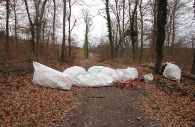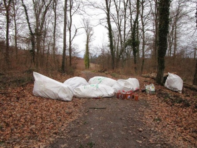 Eine größere Menge an illegal entsorgtem Müll wurde der Polizei am Freitagmittag auf dem Zwickerweg in Bretten nahe dem dortigen Sportplatz liegend gemeldet.