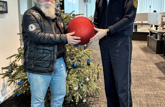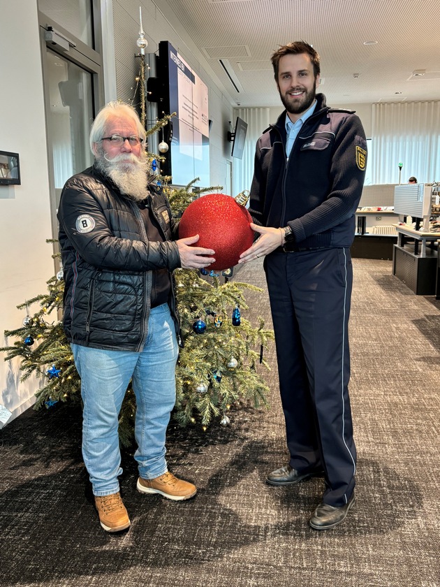 Eine gestohlen geglaubte Weihnachtskugel hat ihren Weg zu seinem Eigentümer zurückgefunden und den Glauben an die Magie von Weihnachten aufrechterhalten. "Ich bin überwältigt, damit hätte ich niemals gerechnet", waren die Worte des Offenburgers, als er am Dienstagmorgen einen Anruf aus dem Polizeipräsidium erhielt und ihm die frohe Botschaft über das Auftauchen seiner unbeschädigten Weihnachtskugel übermittelt werden konnte. Was steckt hinter der Geschichte? Die in einer Dekorationsschale ausgelegte Maxiausgabe einer roten glitzernden Weihnachtskugel sollte über Weihnachten in der Scheffelstraße Freude und Besinnlichkeit verbreiten. Die Freude verblasste allerdings am Morgen des ersten Weihnachtsfeiertages, weil ein bislang Unbekannter das überdimensionale Dekorationsstück aus dem Garten des 72-Jährigen an sich nahm. Traurig und erschüttert hat sich der Bestohlene über Social Media und die lokale Presse an die Öffentlichkeit gewandt, in der Hoffnung, der Dieb erkenne den ideellen Wert der Kugel und bringe sie wieder zurück. Er habe gezielt den Weg über die Öffentlichkeit und nicht den Weg über die Polizei gewählt, um keine justizielle Maschinerie in Gang zu setzen. Das Schmuckstück hat indes bereits am Tag des Verschwindens den Weg zur Polizei gefunden. Anonym, aber mit einer Weihnachtsmütze dekoriert, wurde die Weihnachtskugel vor dem Eingang des Polizeipräsidiums in der Prinz-Eugen-Straße abgelegt. Ein stellvertretender Dienstgruppenleiter des Lagezentrums wunderte sich auf dem Weg zu seiner Schicht über die vor dem Tor platzierte Weihnachtsdeko, in Unwissenheit, dass er gerade mutmaßliches Diebesgut sichergestellt hat. Erst durch den Artikel in der lokalen Presse konnte ein Mitarbeiter der gleichen Dienstgruppe das Geheimnis um die Weihnachtskugel lüften. In Vorbereitung auf eine Übergabe an das Fundbüro hatte die auf Wanderschaft befindliche Glitzerkugel bis dahin bei den Polizeibediensteten viel Freude hinterlassen und so den weihnachtlichen Wunsch des Eigentümers zwar heimlich, aber pflichtgemäß erfüllt. Dem Anruf am Dienstagmorgen folgte wenige Minuten später die persönliche Übergabe an den glücklichen Oststadtbewohner. Der Weihnachtsbaum im Lagezentrum lieferte hierzu die passende Kulisse. Manchmal hat Weihnachten halt doch seine eigene Magie...