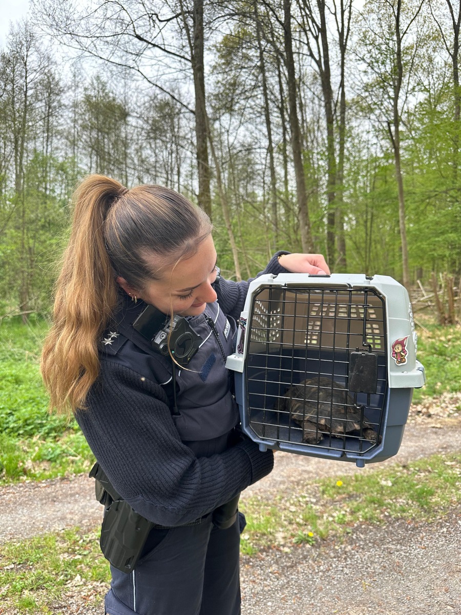 Ein Spaziergänger entdeckte am Mittwochmittag eine handgroße vermutlich entlaufene Schildköte auf einem Waldweg im Ortsteil Oberbruch. Nachdem er die Polizei informierte, konnte eine Streifenbesatzung des Polizeireviers Bühl das Tier übernehmen. In einer Tiertransportbox wurde die Schildkröte, nach einem kurzen Aufenthalt im Polizeirevier, in ein Tierheim gebracht. /vo