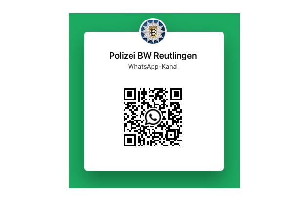 Hier gelangen Sie direkt zum WhatsApp-Kanal des Polizeipräsidiums Reutlingen: https://whatsapp.com/channel/0029VbBiLhp8fewtg2pa0w1o (ah)