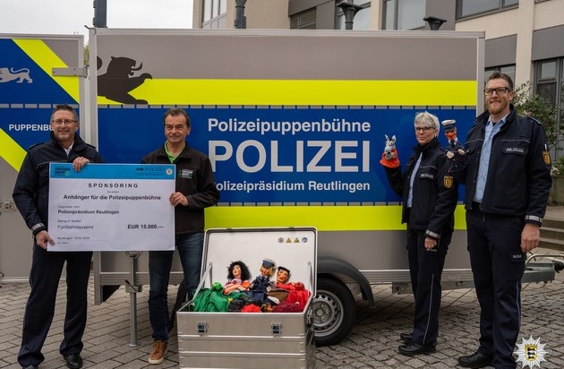 Am Mittwochmittag wurde der neue Anhänger für die Polizeipuppenbühne von der Kreisverkehrswacht Reutlingen-Münsingen an das Polizeipräsidium Reutlingen übergeben.