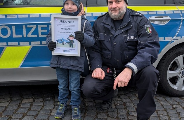 POL-BO: Urkunde für Polizeinachwuchs: Benjamin (5) ist Bochums "jüngster Polizist"
