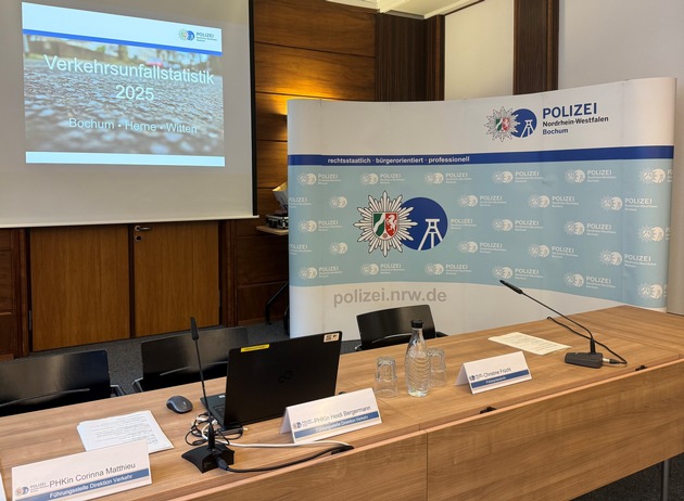 "Jeder Mensch, der am Straßenverkehr teilnimmt, trägt Verantwortung für sich selbst und für andere. Gemeinsam können wir dafür sorgen, dass es auf den Straßen in Bochum, Herne und Witten noch sicherer wird, wenn wir uns mit Aufmerksamkeit, Rücksicht und gegenseitigem Respekt begegnen", so Polizeipräsidentin Christine Frücht bei der Pressekonferenz zur Verkehrsunfallstatistik 2025, die am Mittwoch, 11. März, im Polizeipräsidium Bochum stattfand.