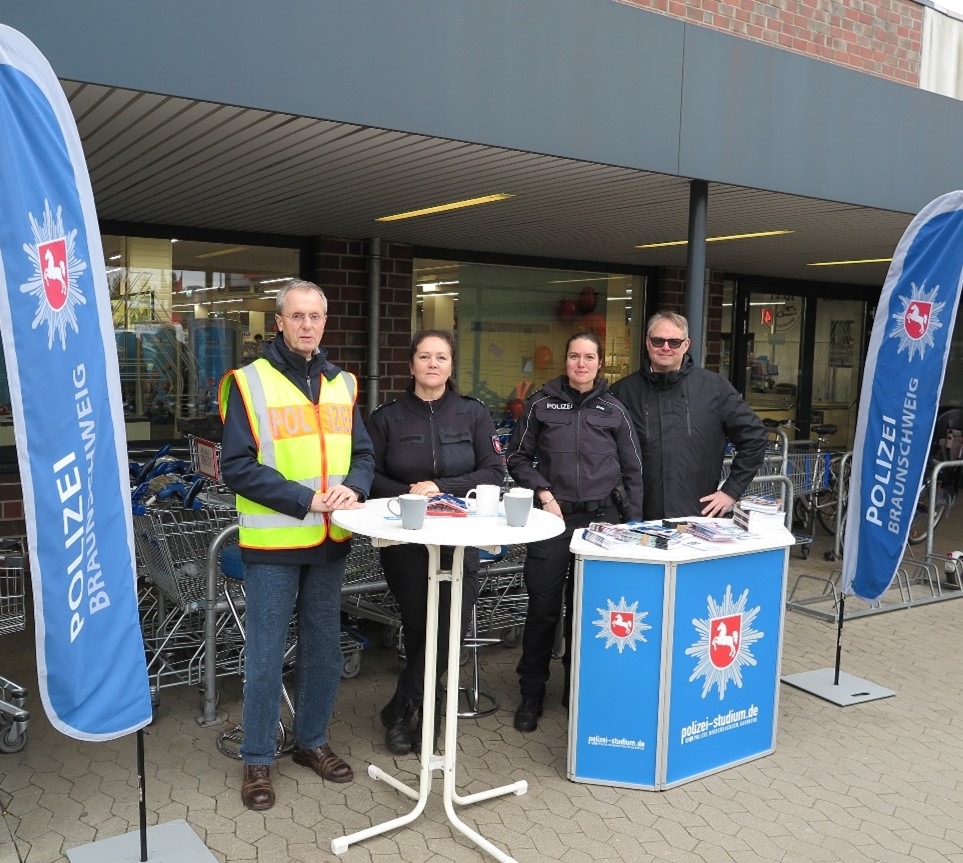 In den vergangenen Wochen ist es auffallend häufig zu Taschendiebstählen in Supermärkten gekommen. Allein in einer Filiale im Bereich Querum wurden in den letzten zwei Monaten 17 Taten bei der Polizei registriert. Die Täter agieren häufig in Gruppen und lenken ihre Opfer gezielt ab, um unbemerkt Wertsachen zu entwenden. Gerade unbeaufsichtigte Handtaschen im Einkaufswagen sind leichte Beute und werden besonders häufig gestohlen. Um weitere Diebstähle zu verhindern und Kundinnen und Kunden auf das Thema aufmerksam zu machen, haben Dirk Nietzold, Hildegard Merchel, Sina Araz und Heinz-Werner Laue einen Infostand vor einem Supermarkt aufgebaut. Hierbei kamen sie mit Kundinnen und Kunden ins Gespräch, stellten Infomaterial zur Verfügung und gaben auch im Markt Präventionshinweise.