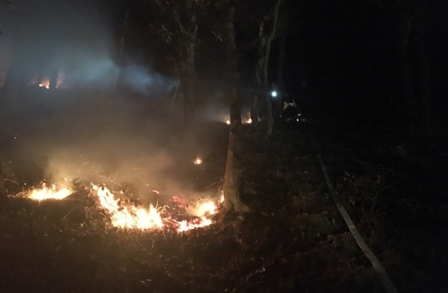 Gestern Abend um 22:37 Uhr wurden die Feuerwehren Hagen und Dortmund zu einem Waldbrand im Ortsteil Syburg alarmiert. Nach der Erkundung stellte sich heraus, dass es im Wald auf einer Fläche von circa 200 Quadratmeter brannte.