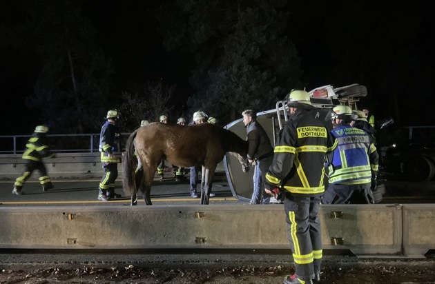 FW-DO: Auffahrunfall mit 5 Fahrzeugen auf der A45 - Pferdeanhänger umgekippt.