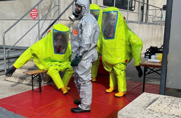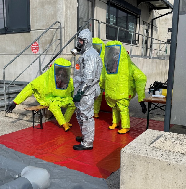 Zur Eindämmung und Beseitigung der Gefahr wurden umfangreiche Maßnahmen erforderlich. Unter Atemschutz und mit Spezialausrüstung gelang es den Einsatzkräften den Austritt zu stoppen.