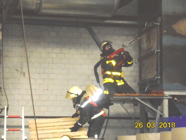 Um 11.37 Uhr wurde die Feuerwehr Bottrop zu einem Brand in einem Betrieb an der Straße "Am Kruppwald" alarmiert. Beim Eintreffen stellte sich heraus, dass in einer Filteranlage ein Brand entstanden war. Aufgrund des geschlossenen Systems der Anlage konnten die vorgehenden Kräfte zunächst nicht an den Brandherd gelangen. Durch zwei Trupps wurde die Anlage von außen mit Wasser gekühlt. Im Innern der Anlage kam es immer wieder zu Verpuffungen, die zu einer massiven Rauchentwicklung führten. Das Öffnen der Revisionsklappen wäre in diesem Moment nur unter großer Eigengefährdung möglich gewesen. Aus diesem Grund wurde die Feuerwehr Gladbeck alarmiert die über ein Speziallöschgerät verfügt, welches ein minimalgroßes Loch in die Außenhaut der Filteranlage fräst und anschließend Wasser in das Innere der Filteranlage einbringt. Dies wurde an verschiedenen Stellen der Filteranlage durchgeführt. Dadurch konnte die Temperatur im Innern der Filteranlage soweit gesenkt werden, dass ein Öffnen der Revisionsklappe möglich wurde. Hierüber wurden die letzten Glutnester abgelöscht. Gegen 15.30 Uhr war der Einsatz beendet.