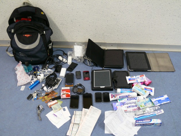 Eine erneute Ortung des Tablets führte die Bundespolizisten zum Scheck-In Center in der Rüppurrer Straße. In einer Bäckerei konnten die Beamten, den zuvor geflüchteten Mann feststellen und ebenfalls vorläufig festnehmen. Der 34-Jährige hatte den Rucksack circa fünf Meter entfernt, in einer anderen Sitzgruppe abgestellt. Bei der Durchsuchung des Rucksackes stellten die Beamten das zuvor entwendete Diebesgut, sowie zahlreiche Kosmetikartikel sicher. Der Gesamtwert des Diebesgutes wird auf circa 3.500EUR geschätzt.