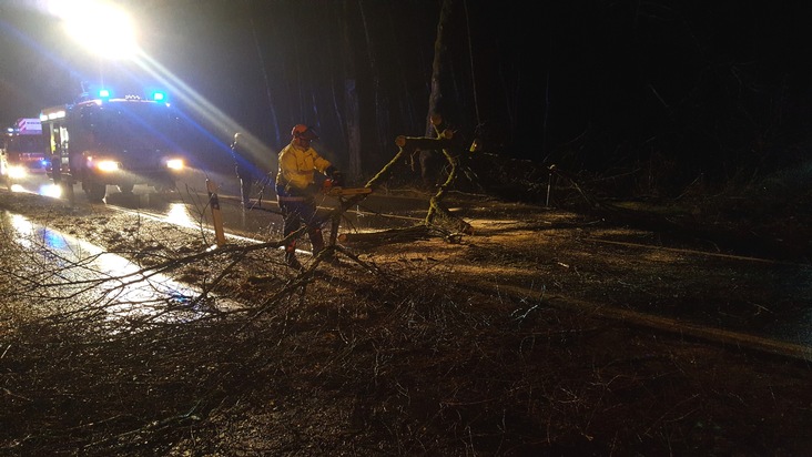 Aufstehen, auch wenn die Stadt schläft: Das ist eine Aufgabe der Freiwilligen Feuerwehr. Dienstagnacht piepsten um 02:17 Uhr die Funkmeldeempfänger. In der Hofermühle war ein Baum auf die Ratinger Straße gefallen und machte diese unpassierbar. Rund eine Stunde sägten die Frauen und Männer der Feuerwehr.