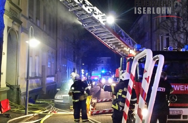 In der vergangenen Nacht um 23:20 Uhr wurde die Feuerwehr Iserlohn zu einem Brand in einem Mehrfamilienhaus in die Karlstraße gerufen. Beim Eintreffen der ersten Kräfte war bereits eine starke Rauchentwicklung aus dem Hauseingang erkennbar. Auf einigen Balkonen im 1. und 2. Obergeschoß befanden sich Personen, die ihre Wohnung nicht über den Treppenraum verlassen konnten.