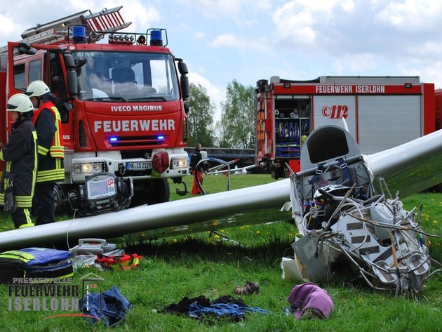 Zwei Schwerverletzte forderte heute Mittag um 13:06 Uhr der Absturz eines Segelflugzeugs in Iserlohn Sümmern. Hierbei wurden zwei ca. 20 und 40 jährige männliche Personen in dem Segelfugzeug eingeklemmt.