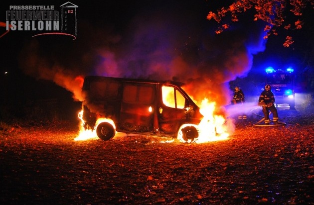 FW-MK: Lieferwagen brannte in voller Ausdehnung
