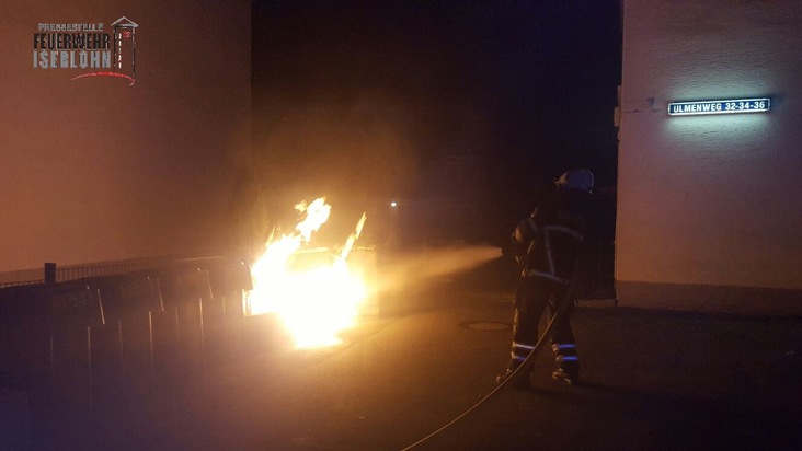 Relativ ruhig verlief der Dienst für den Brandschutz an Silvester. Zu 8 Einsätzen rückten die Einsatzkräfte aus. Um 14:30 Uhr wurde das Hilfeleistungslöschfahrzeug der Berufsfeuerwehr zu einer Tierrettung alarmiert. Eine Katze saß in etwa 5 Meter Höhe in einer Konifere fest. Eine Kollegin stieg über eine Steckleiter auf und brachte die dankbare Katze wieder auf den Boden. Um 15:41 Uhr meldeten mehrere Anrufer über den Notruf einen Brand an der Schule der Schulstraße. In einem Kellerabgang brannten altes Blätterwerk und Zeitungen. Das Feuer hatte bereits auf die Holztür zu einer Toilettenanlage übergegriffen. Mit einem C-Rohr unter Atemschutz wurde das Feuer schnell gelöscht. Der Löschzug der Berufsfeuerwehr wurde durch die Löschgruppe Stadtmitte der Freiwilligen Feuerwehr unterstützt. Schadenshöhe und Brandursache werden durch die Polizei ermittelt. Personen kamen nicht zu Schaden. Weiter ging es nach dem Jahreswechsel. An der Wiesenstraße, an der Berliner Allee, an der Baarstraße und an der Nußbergstraße wurden brennende Altpapiercontainer gemeldet. Das brennende Altpapier in den Containern wurde jeweils mit einem C-Rohr abgelöscht. Unterstützung kam hier von den Löschgruppen Bremke und Iserlohner Heide der Freiwilligen Feuerwehr. An der Grabenstraße brannte zudem ein 1000 Liter Wertstoffmüllbehälter aus Kunststoff. Da das Feuer auf das Buschwerk überzugreifen drohte, setzten die zuerst eintreffenden Polizeibeamten als Erstmaßnahme einen Pulverlöscher zur Brandbekämpfung ein. Mit einem C-Rohr wurden die Glutnester abgelöscht. Brennende Hausmüllbehälter aus Kunststoff mussten auch am Ulmenweg mit einem C-Rohr abgelöscht werden. Zum Jahreswechsel verstärkte die Löschgruppe Stadtmitte mit dem Tanklöschfahrzeug die Brandsicherheitswache am Parktheater für das Abbrennen des Höhenfeuerwerks am Parktheater.