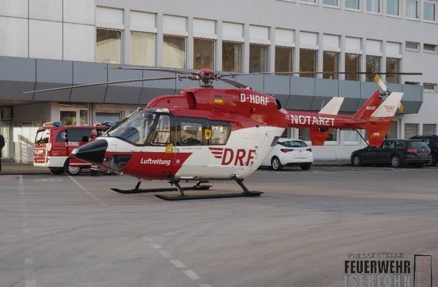 Am frühen Nachmittag um 15:00 Uhr rückte der Iserlohner Rettungsdienst zu einem internistischen Notfall zur Gennaer Straße aus. Auf Grund der schwere der Erkrankung und den örtlichen Gegebenheiten, waren umfangreiche Maßnahmen wie die Alarmierung eines Rettungshubschraubers und des kompletten Löschzuges der Berufsfeuerwehr Iserlohn erforderlich. An der Einsatzstelle waren zugleich Tragehilfe, Patientengerechte Rettung über die Drehleiter und eine Landeplatzsicherung nötig. Der Treppenraum ließ keinen Transport über das innere des Hauses zu und es konnte eine Patientengerechte Rettung mittels Drehleiter vorgenommen werden. An der aufwendigen Rettung waren insgesamt 21 Einsatzkräfte beteiligt und dauerte 90 Minuten an. Der Patient ist in eine Dortmunder Spezialklinik geflogen worden.