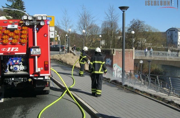An der neu gestalteten Promenade am Lennedamm brannten gegen 16:00 Uhr etwa 50 Quadratmeter trockene Grasnarbe. Mit einem C-Rohr löschten die Einsatzkräfte der Berufsfeuerwehr den Brand. Weil es durch das Feuer zu einer sehr starken und weithin sichtbaren Rauchentwicklung kam, gingen in der Einsatzzentrale der Berufsfeuerwehr Iserlohn etwa 20 Notrufe für das Ereignis ein. Personen kamen nicht zu Schaden.