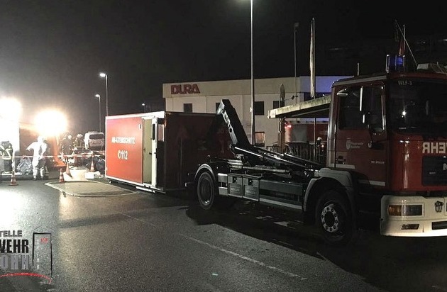 Bei dem am gestrigen Abend (15.09.2017) gegen 21:00 Uhr ausgebrochenen Großbrand bei der Firma Dura in Plettenberg wurde durch die Kreisleitstelle auch Unterstützung von der Berufsfeuerwehr Iserlohn angefordert. Wegen des großen Einsatzes von Atemschutzgeräten an der Einsatzstelle, rückte um 23:00 Uhr ein Wechselladerfahrzeug mit dem Abrollbehälter Atemschutz (AB-A) der Berufsfeuerwehr Iserlohn nach Plettenberg aus. Auf dem AB-A befindet sich eine große Anzahl an Atemschutzgeräten, die bei Bedarf der Einsatzstelle zugeführt werden kann. In diesem Fall als "Überörtliche Hilfe" nach Plettenberg. Die Feuerwehren aller Städte und Gemeinden unterstützen sich bei größeren Schadenslagen mit Gerätschaften und/oder Personal. Für die Besatzung der Iserlohner Berufsfeuerwehr war der Einsatz um 03:00 Uhr beendet.