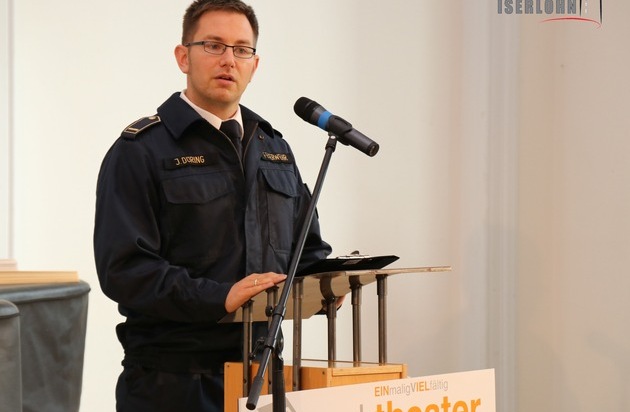 Brandrat Jörg Döring, stellv. Leiter der Feuerwehr Iserlohn, beglückwünschte allen zur bestandenen Laufbahnprüfung und richtete im schönen Ambiente des Löbbeke-Saals des Parktheaters einige Grußworte an die neuen Brandmeister/innen, sowie an die zahlreich erschienenen Angehörigen und den Abordnungen der anderen Feuerwehren. Danach wurden die Zeugnisse und die Ernennungsurkunden überreicht.