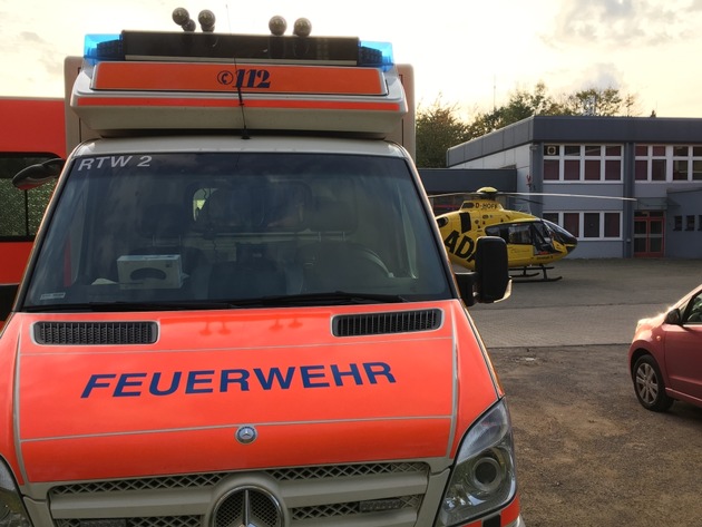 Erneut zum Einsatz kam am späten Nachmittag der Rettungshubschrauber. Ein 8 Jahre altes Mädchen war bei einem Sportunfall in Verbindung mit einem Rhönrad verletzt worden. Der Unfall ereignete sich gegen 17:00 Uhr in einer Sporthalle im Letmather Nordfeld. Für den Transport in eine Klinik nach Dortmund forderten die Einsatzkräfte erneut den Rettungshubschrauber "Christoph 8" an, der am Feuerwehrgerätehaus Letmathe landete. Die Landung und der Start wurden durch die Feuerwehr abgesichert.