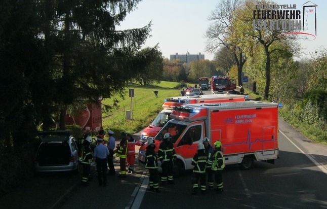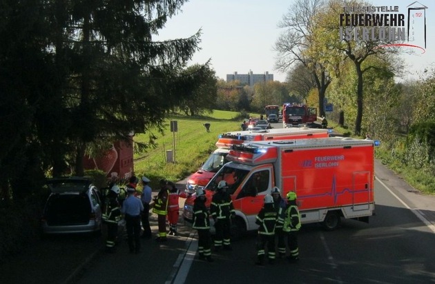 Um 14:36 Uhr wurden gleichzeig die Rüstzüge und der Rettungsdienst der Feuerwehren Hemer und Iserlohn alarmiert. Auf der Mendener Landstraße, kurz vor der Stadtgrenze nach Hemer, hatte sich ein Verkehrsunfall ereignet. Den ersten Meldungen nach, sollten mehrere Personen eingeklemmt sein. Dies bestätigte sich zum Glück nicht. Allerdings mussten vier Personen, darunter zwei Kinder, leicht verletzt durch den Rettungsdienst in ein Iserlohner und ein Hemeraner Krankenhaus transportiert werden.