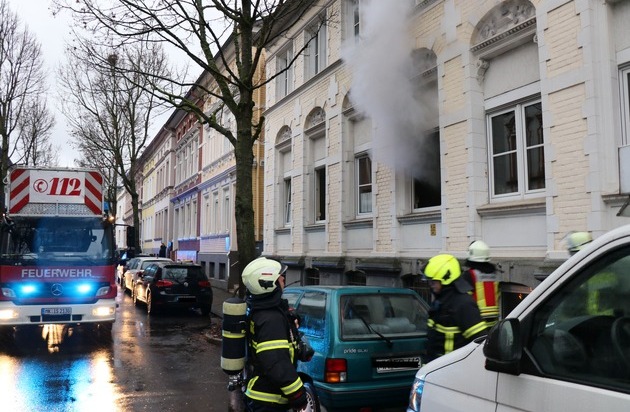 Um 15:42 Uhr wurde der Feuerwehr Iserlohn eine starke Rauchentwicklung aus einem Mehrfamilienhaus an der Weststraße gemeldet. Bei Eintreffen des Löschzugs der Berufsfeuerwehr konnte eine starke Rauchentwicklung aus dem Hauseingang und aus einem Fenster der betreffenden Erdgeschosswohnung des Gebäudes festgestellt werden. Eine Frau hatte sich bereits mit einem Sprung aus einem Fenster der Erdgeschosswohnung in Sicherheit gebracht. Hierbei verletzte sie sich leicht und wurde durch den Rettungsdienst in ein Krankenhaus transportiert. Die Brandbekämpfung in der Küche der Wohnung übernahm ein Trupp unter Atemschutz mit einem C-Rohr. Weitere Trupps kontrollierten die anderen Wohnungen im Obergeschoss. Zur Entrauchung wurde ein Überdrucklüfter eingesetzt. Zur Brandursachenermittlung wurde die Einsatzstelle der Polizei übergeben. Nach rund einer Stunde war der Einsatz für den Löschzug der Berufsfeuerwehr, dem Rettungsdienst und den Löschgruppen Stadtmitte und Obergrüne der Freiwilligen Feuerwehr beendet.