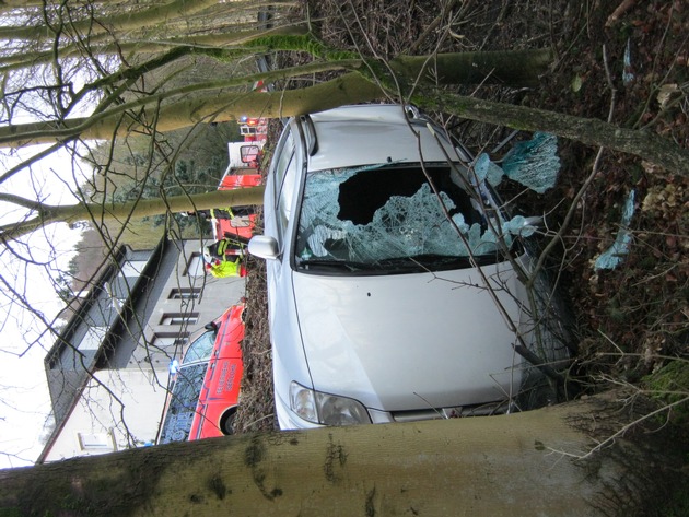 FW-MK: Baumstumpf in Fahrzeug gebohrt, Fahrerin verletzt
