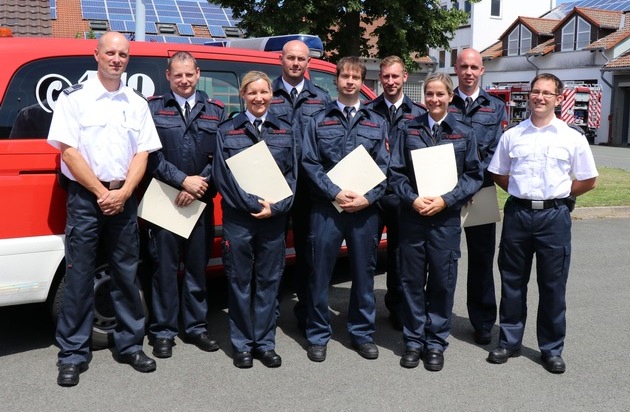 Sieben Brandmeisterinnen und Brandmeister wurden mit Wirkung zum 01.07.2018 zu Oberbrandmeisterinnen bzw. Oberbrandmeistern bei der Berufsfeuerwehr Iserlohn befördert. Aus den Händen von Bürgermeister Dr. Peter Paul Ahrens erhielten folgende Kolleginnen und Kollegen die Beförderungsurkunde: v.l. Dirk Niedergriese, Stephanie Löwer, Waldemar Januschewski, Lars Hoßbach, Sebastian Redlich, Katharina Glatzel und Daniel Bracht. Zu den ersten Gratulanten gehörten der Leiter der Feuerwehr Iserlohn, Jörg Döring(r), sowie Christopher Rosenbaum(l), Abteilungsleiter Einsatzvorbereitung-Controlling.