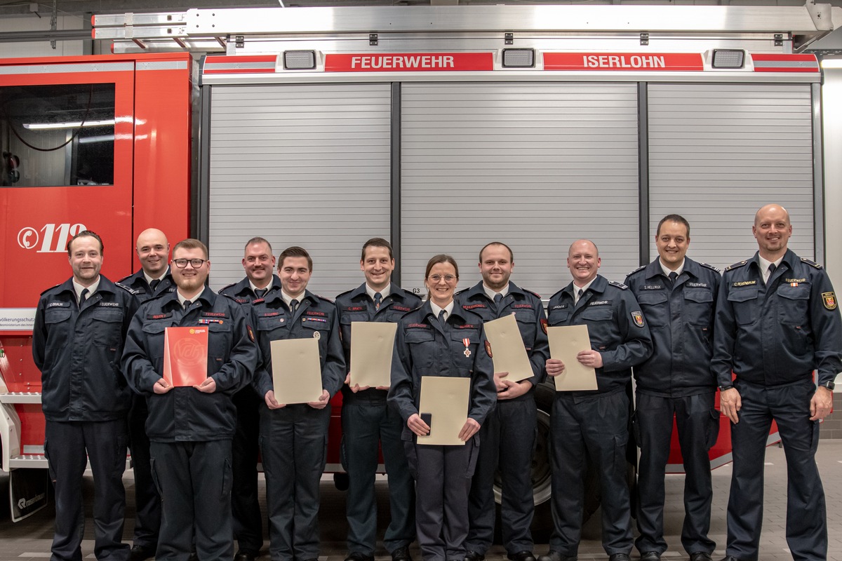 Die Kameraden konnten sich an dem Abend über einige Beförderungen und Ehrungen freuen. Lukas Mühlenkord und Christian Spata bekamen die Beförderung zum Oberfeuerwehrmann und Steffen Ludwig wurde zum Unterbrandmeister befördert. Tobias Seiler wurde für 10 Jahre Mitgliedschaft in der Feuerwehr vom Verband der Feuerwehr geehrt und Verena Berge bekam das Feuerwehr Ehrenzeichen in Silber für 25 Jahre treue Pflichterfüllung im Dienste der Feuerwehr. Auch eine Entpflichtung gab es. Andre Laucht wurde von seiner Funktion als stellvertretender Löschgruppenführer entpflichtet. Die Löschgruppe bedankt sich für seine geleistete Arbeit.