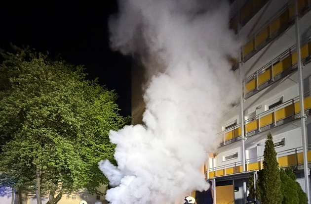 Parallel zu den Löscharbeiten wurden das Treppenhaus sowie einige Wohnungen auf eine weitere Rauchausbreitung im Gebäude kontrolliert.