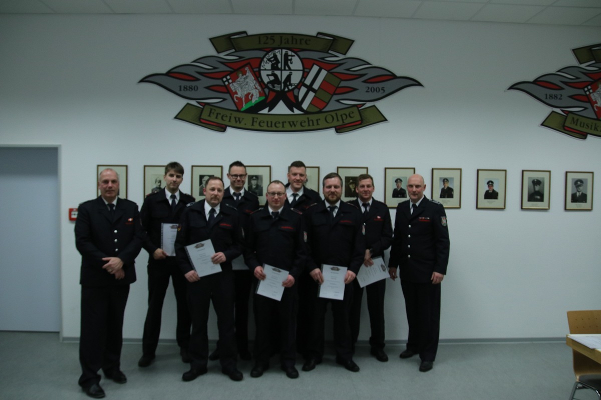 Es folgten Aufnahmen, Beförderungen, Verabschiedungen und Ernennungen von Funktionsträgern: Unterstützungsabteilung: Nicole Becker-Middel Feuerwehrfrau / -mann: Franz-Lasse Walkenbach, Julian Stracke, Sarah Junge, Lennart Bagorda, Julian Sunder Oberfeuerwehrmusikerin / -musiker: Anna Schlösser, Henry Hengstebeck, Philipp Nies, Jakob van der Wielen Oberfeuerwehrfrau / -mann: Maren Brüser, Luca Bagorda, Jakob Feldmann, Johannes Feldmann, Henrik Halbe Hauptfeuerwehrfrau / -mann: Melanie Heine, Jonas Kappestein Hauptfeuerwehrmusiker Felix Wudtke Unterbrandmeister: Simon Hengstebeck, Silas Ohm, Marvin Wegermann Brandmeister: Sebastian Scheele, Felix Burghaus, Peter Sackewitz, Christian Kappestein Oberbrandmeister: Marco Ester, Michael Pellemeyer Hauptbrandmeister: Thomas Raab, Phillip Nagy, Michael Süper Brandinspektor: Andreas Gummersbach, Manuel Henze Verabschiedung von Einheitsführern: Georg Hengstebeck, Andreas Greitemann, Christoph Rickelhoff Ernennung Kinderfeuerwehrwartin / -wart: Nicole Becker-Middel, Rudi Ehrengruber Ernennung Einheitsführer: Patrick Schneider, Marius Langemann Ernennung stellvertretende Einheitsführer: Andreas Gummersbach, Michael Pellemeyer, Jan Weiskirch, Mathias Grüger Übernahme in die Ehrenabteilung: Gerhard Reuber, Bernd Huckestein