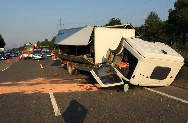 Ein mit 2400 Kilogramm Sprengstoff beladener Lkw ist heute Morgen auf der Autobahn 46 verunglückt. Das Fahrzeug war in Fahrtrichtung Wuppertal gegen die Beton-Leitplanke geprallt und verlor nahezu vollständig die Ladung.