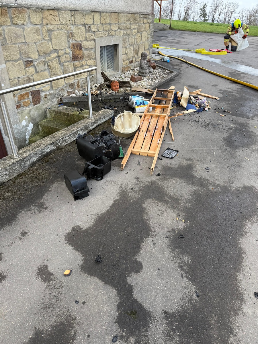 In einem Abstellraum wurde ein Brand festgestellt. Dort brannten mehrere Gegenstände, darunter ein Regal sowie eine Heißluftfritteuse (diese war nicht in Betrieb). Das Feuer konnte zügig unter Kontrolle gebracht und abgelöscht werden.