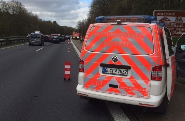 FW-GL: Schwerer Verkehrsunfall mit 7 Verletzten auf der BAB 4 in Fahrtrichtung Köln
