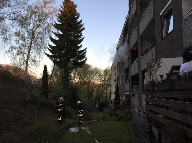 Umgehend wurde die Menschenrettung über die Drehleiter eingeleitet und die Person aus dem 4. Obergeschoss konnte so in Sicherheit gebracht werden. Zeitgleich ging ein Atemschutztrupp über das durch die Feuerwehr überdruckbelüftete Treppenhaus mit einem C-Rohr zur Brandwohnung vor. In der Wohnung wurden keine Personen angetroffen. Der Brand eines Rattanregals hatte sich auf den Balkon beschränkt und konnte schnell unter Kontrolle gebracht werden. Durch die geplatzte Fensterscheibe kam es aber zu einer Verrauchung der Wohnung. Parallel zu diesen Maßnahmen wurde ein Angriff über eine tragbare Leiter auf der Gebäudrückseite vorbereitet, der dann aber abgebrochen werden konnte.