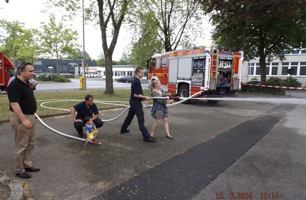 Am Freitag, den 12.06.2015 besuchte der Rotary Club Neandertal die Freiwillige Feuerwehr Erkrath auf der Feuer- und Rettungswache an der Schimmelbuschstraße. Der amtierende Präsident der Rotarier, Dr. med. Lichtnecker, der auch der Arbeitsmediziner der Feuerwehr sowie stellvertretender Vorsitzender des Fördervereins der Freiwilligen Feuerwehr Erkrath e.V. ist, hatte für seine Clubkameraden und deren Familien den Besuch bei den "Blauröcken" organisiert. Dabei kam es den Besuchern darauf an, neben den umfassenden Erklärungen zu Fahrzeugen und Abläufen bei der Feuerwehr, einmal selber Hand an die Einsatzgeräte anzulegen. Großes Interesse bestand insbesondere bei den Herren, mit den hydraulischen Schneid- und Spreizgeräten einen schrottreifen PKW zu "zerlegen". Eine Übung mit der Feuerwehrangehörige die Befreiung von eingeklemmten Opfern bei Verkehrsunfällen trainieren. Weiterhin konnten alle einmal den Wasserdruck eines C-Rohres spüren und die Handhabung dieses Löschgerätes ausprobieren. Nach der Besichtigung der Einsatzfahrzeuge sowie der Feuer- und Rettungswache durften die "Mutigen" noch im Rettungskorb der Drehleiter in luftiger Höhe über Hochdahl blicken. Nachdem der Nachmittag noch mit einem zünftigen Essen vom Grill zu Ende ging, waren sich alle Rotarier einig, dass "Feuerwehr zum Anfassen" ein spannendes und absolut nicht alltägliches "Abenteuer" war. (M. Steinacker)