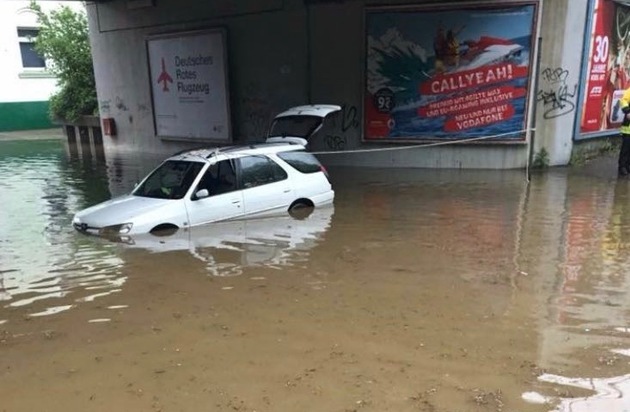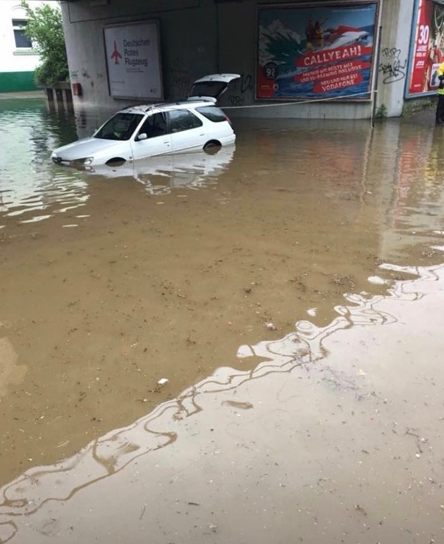 An der Eisenbahnunterführung auf der Schlüterstraße musste die Feuerwehr zwei Personen aus einem PKW retten, da das Wasser dort auf mehr als 80 cm gestiegen und das Fahrzeug im Wasser bereits aufgeschwommen war. Das junge Pärchen war zwar etwas nass geworden, jedoch nicht verletzt. An dem PKW entstand erheblicher Sachschaden.