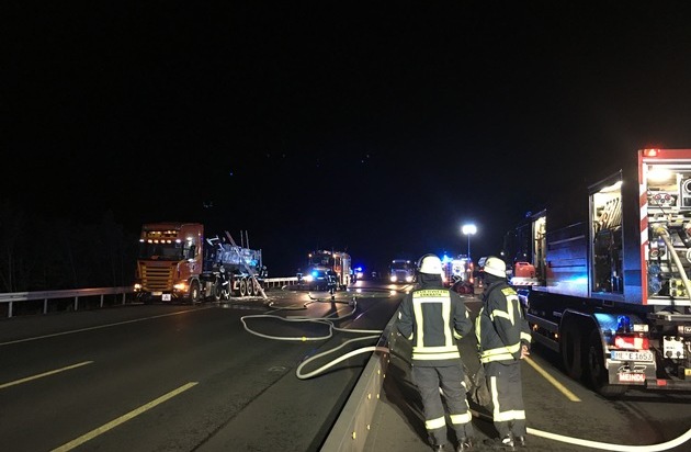 FW-Erkrath: LKW-Brand auf der BAB 3